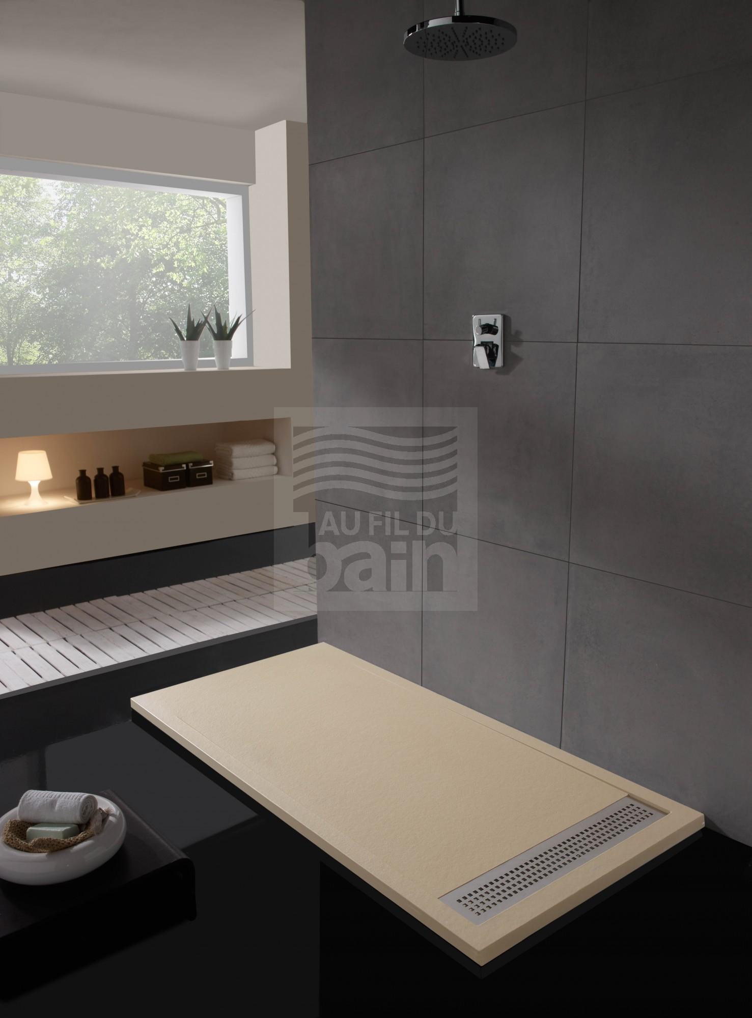 Le receveur de douche extra-plat avec caniveau en béton de synthèse est constitué de résine et de charge minérale ce qui rend sa surface moins glissante et plus chaleureuse que le receveur en céramique. Ces receveurs de douche sont plus stables du fait de leur épaisseur égale sur la totalité de la surface, mais aussi plus résistants aux chocs. Les dimensions varient de 80 à 210cm, en version standard mais également sur-mesure.