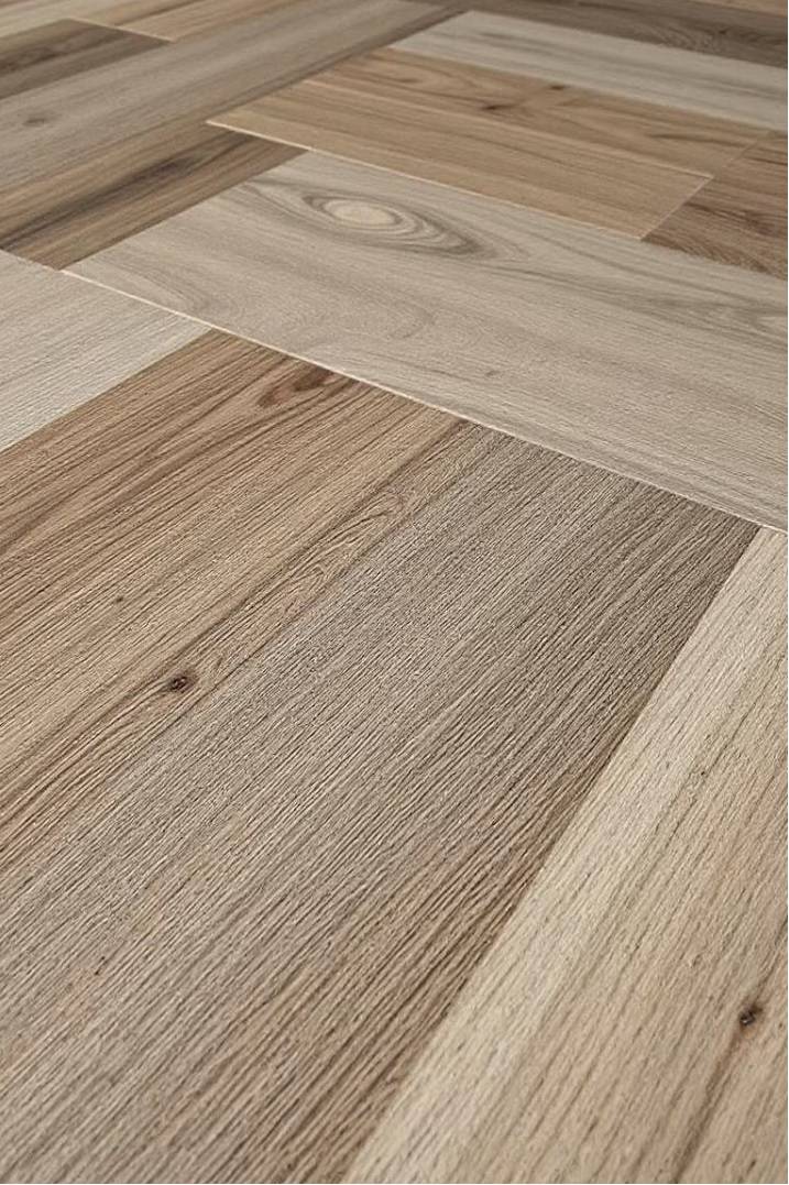 La structure de surface suit le dessin de la lame ou dalle, créant un effet de profondeur et de relief, pour une imitation réaliste du bois.
